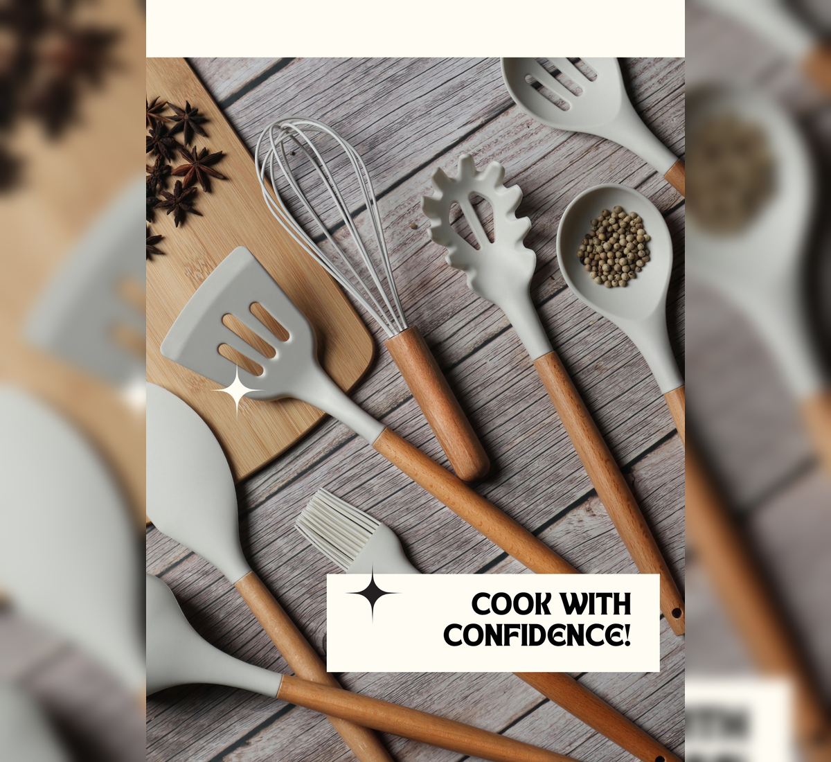 ست ابزار آشپزخانه با دسته چوبی | زیبا، مقاوم و مناسب ظروف نچسب