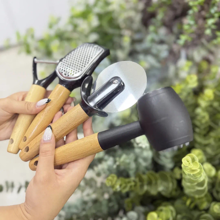 ست ابزار آشپزخانه با دسته چوبی | زیبا، مقاوم و مناسب ظروف نچسب